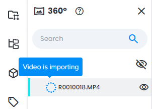 Video(s) werden im 360 Edition Explorer mit dem entsprechenden Status Video wird importiert und einem Symbol angezeigt.