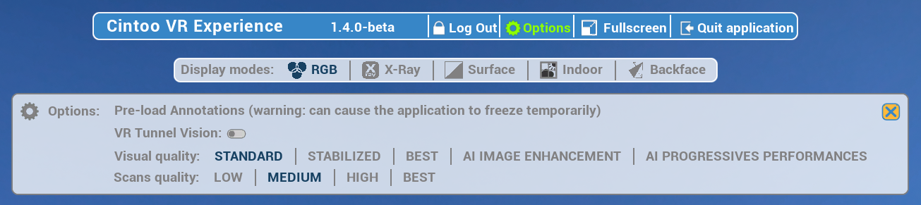Similar to Fetch from cloud in Annotations. - VR Tunnel Vison - due to the navigation locomotion change users can activate this option to make movement smoother. Could also be activated from VR Tools menu.
