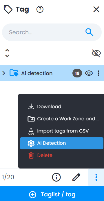 3. With a tag list selected, click AI Detection in the list of available actions in Tag Explorer.