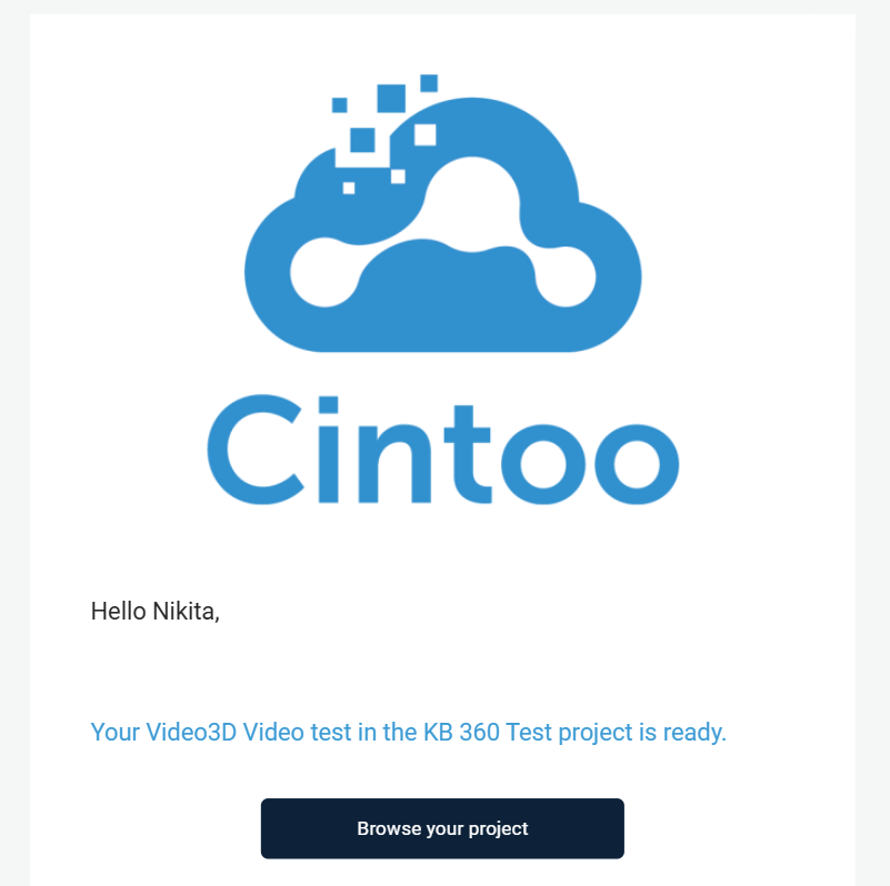 Once a video is loaded to the project an email notification is sent. Failed video has a corresponding icon.