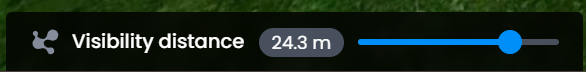 Note: path could be visualized without Gaussian Splat, but Gaussian Splat cannot be visualized without a path. - Adjust the visibility distance slider - use visibility distance slider at the bottom left of the viewer to control how far Gaussian Splats rendering extends from the camera position. This helps manage performance and visual clarity.