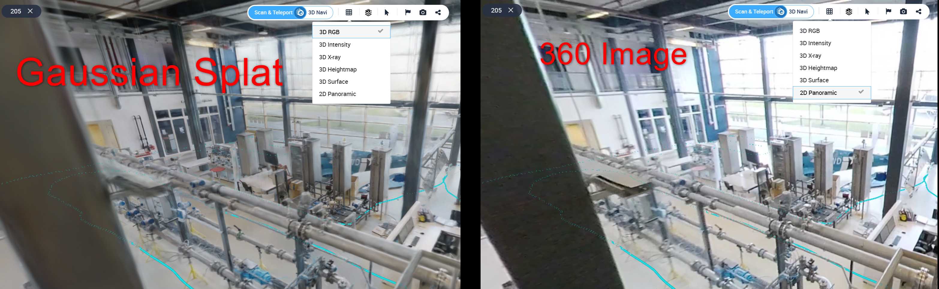 - Toggle visibility - show or hide Gaussian Splat layer in 3D view from 360 Edition Explorer.