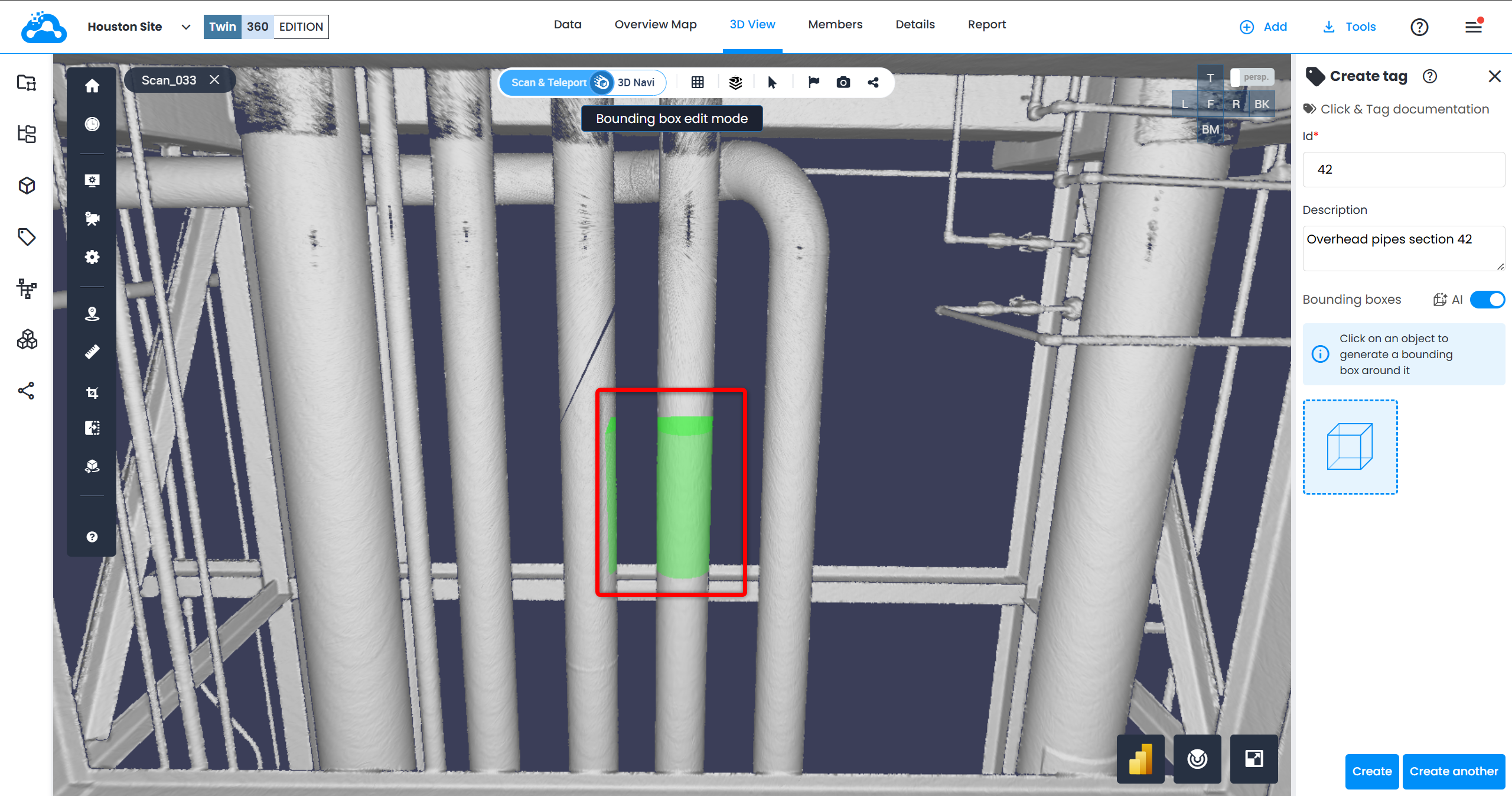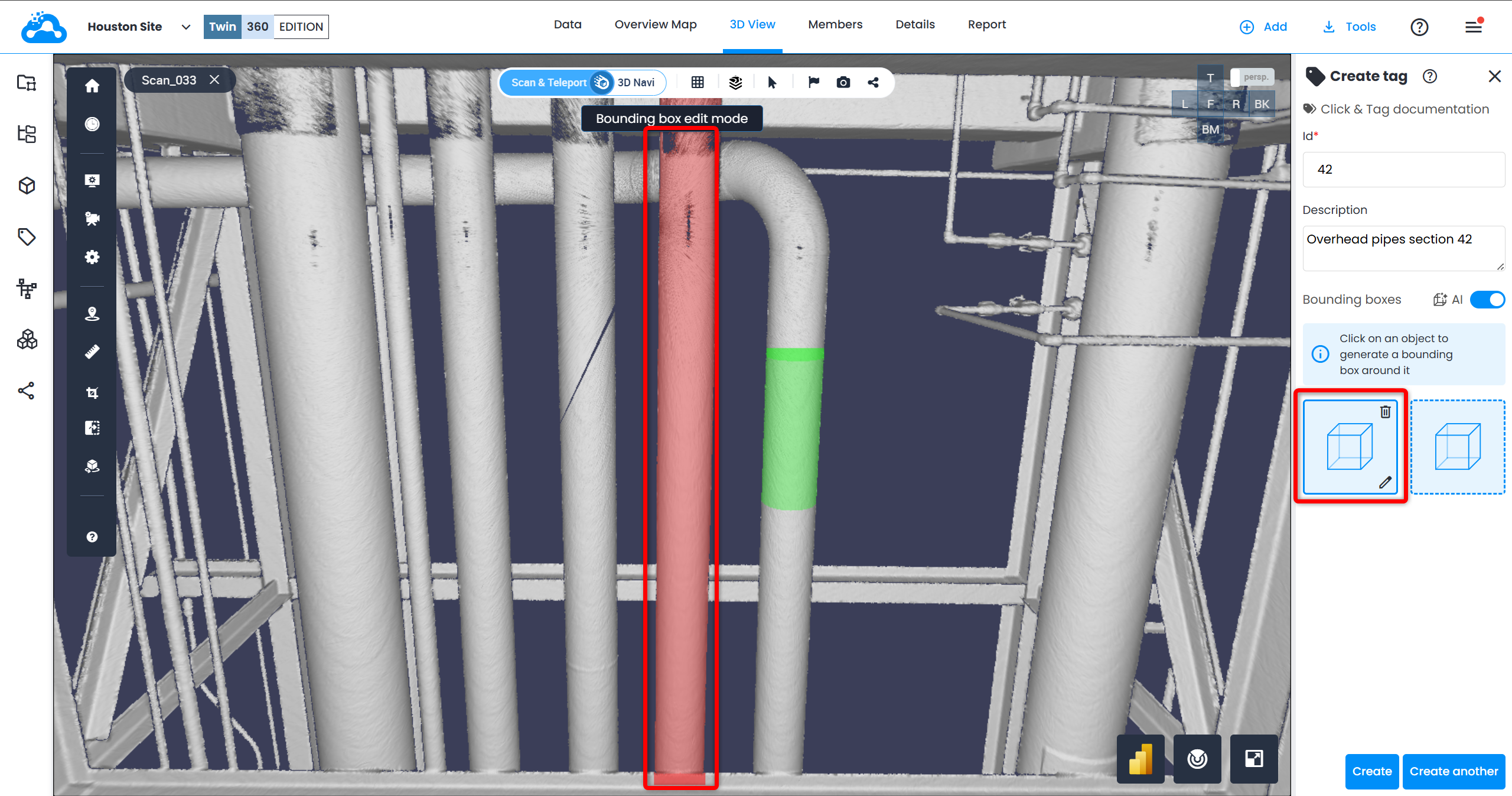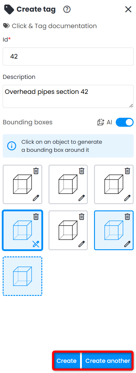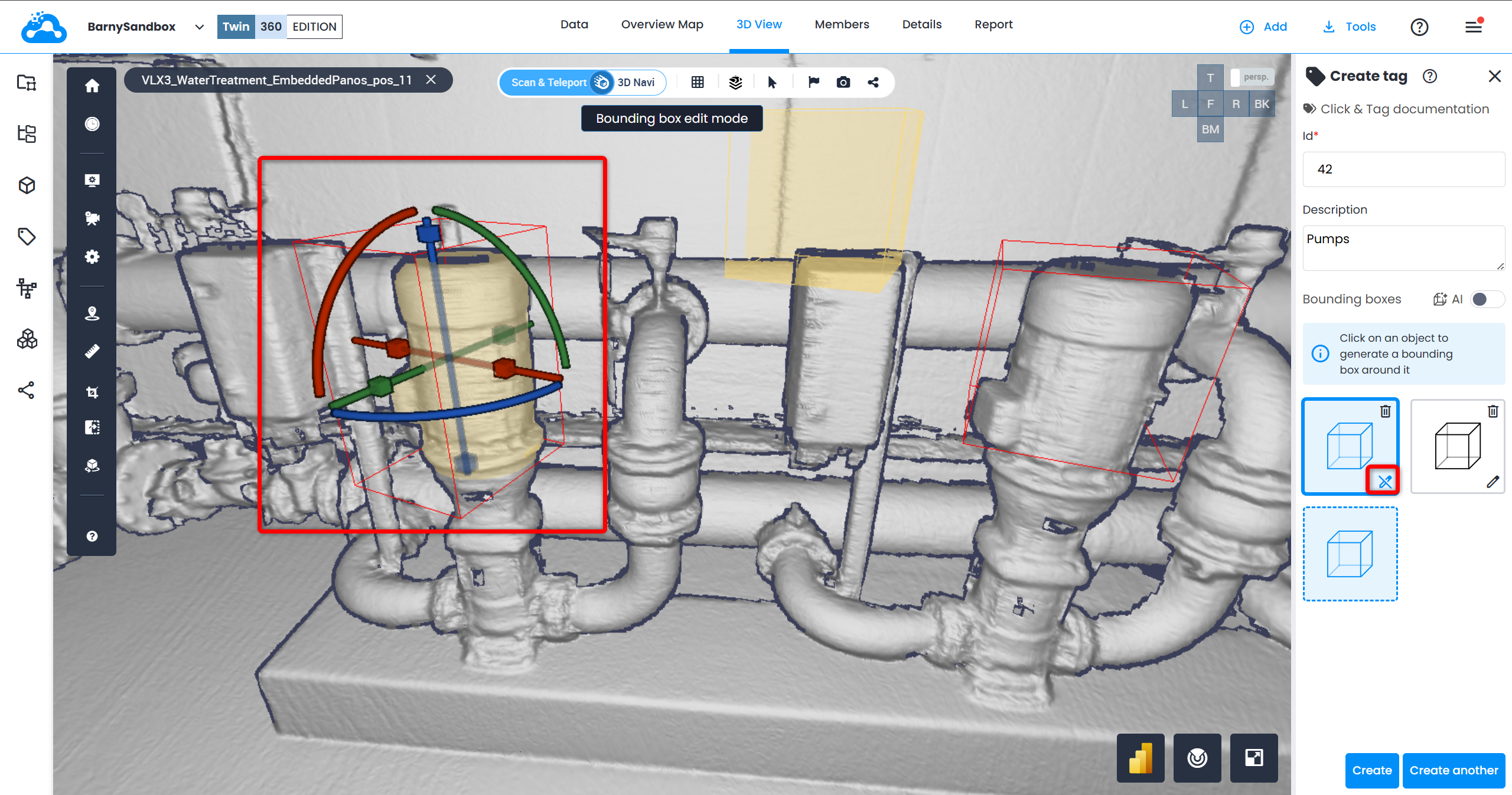 13. To edit a tag, click on it and then click on Edit at the bottom of Tag Explorer. The menu on the right opens, allowing to adjust the needed bounding box or add additional ones.