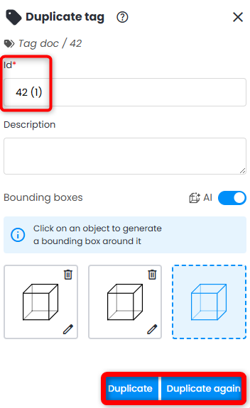 13. To edit a tag, click on it and then click on Edit at the bottom of Tag Explorer. The menu on the right opens, allowing to adjust the needed bounding box or add additional ones.