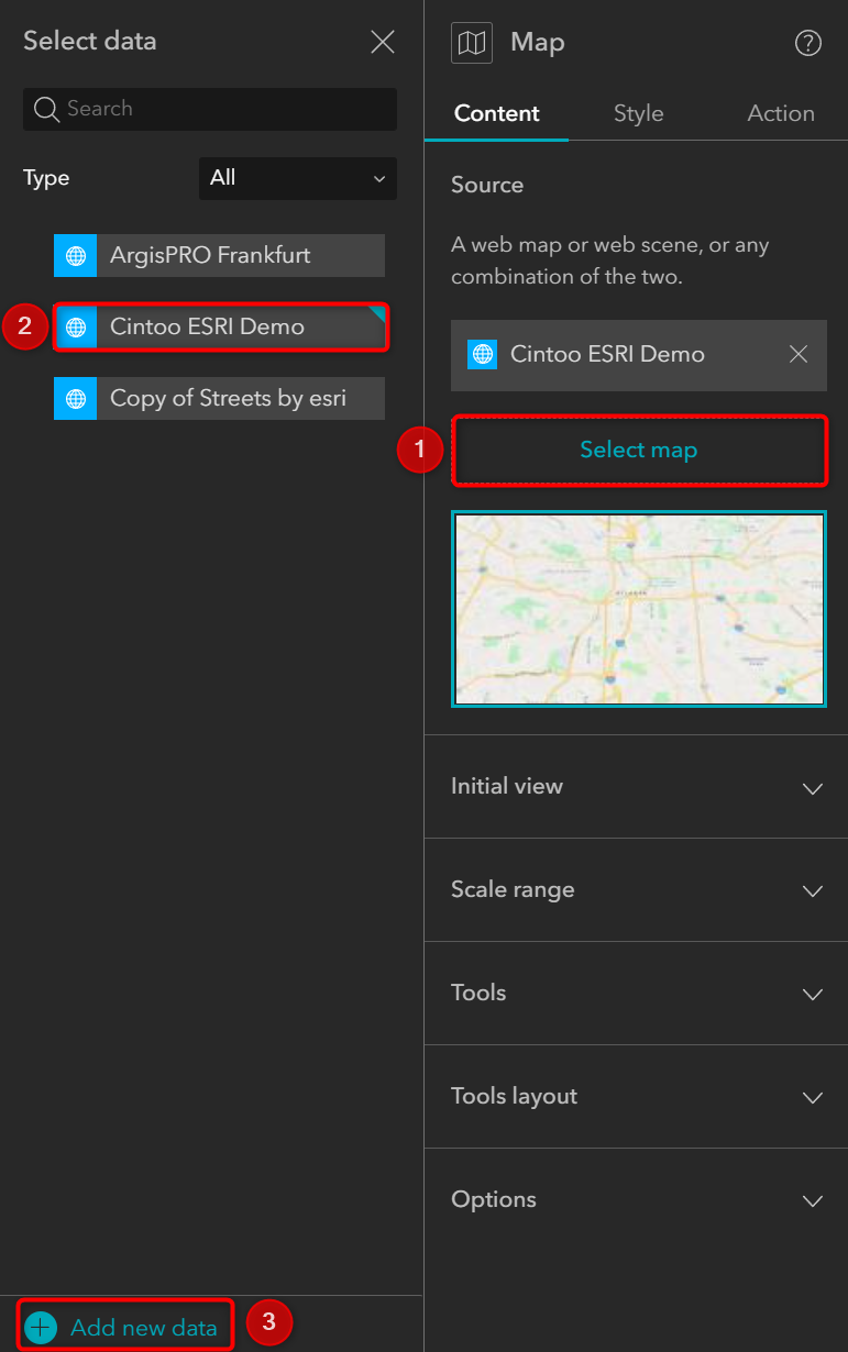 2. Intégrez Cintoo Widget à l'installation existante avec un widget Map déjà en place.