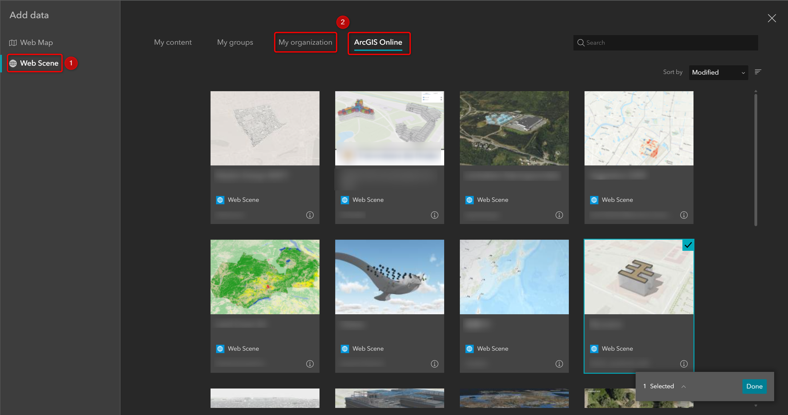 5. À partir de Web Scene, choisissez la carte qui répond aux besoins.