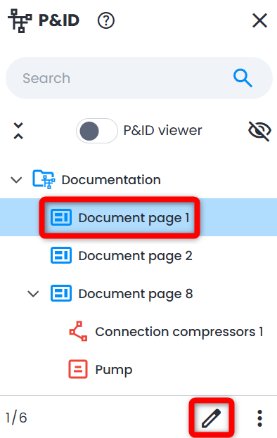 1. Cliquez sur la page P&ID nécessaire dans P&ID Explorer. Cliquez sur Modifier en bas.