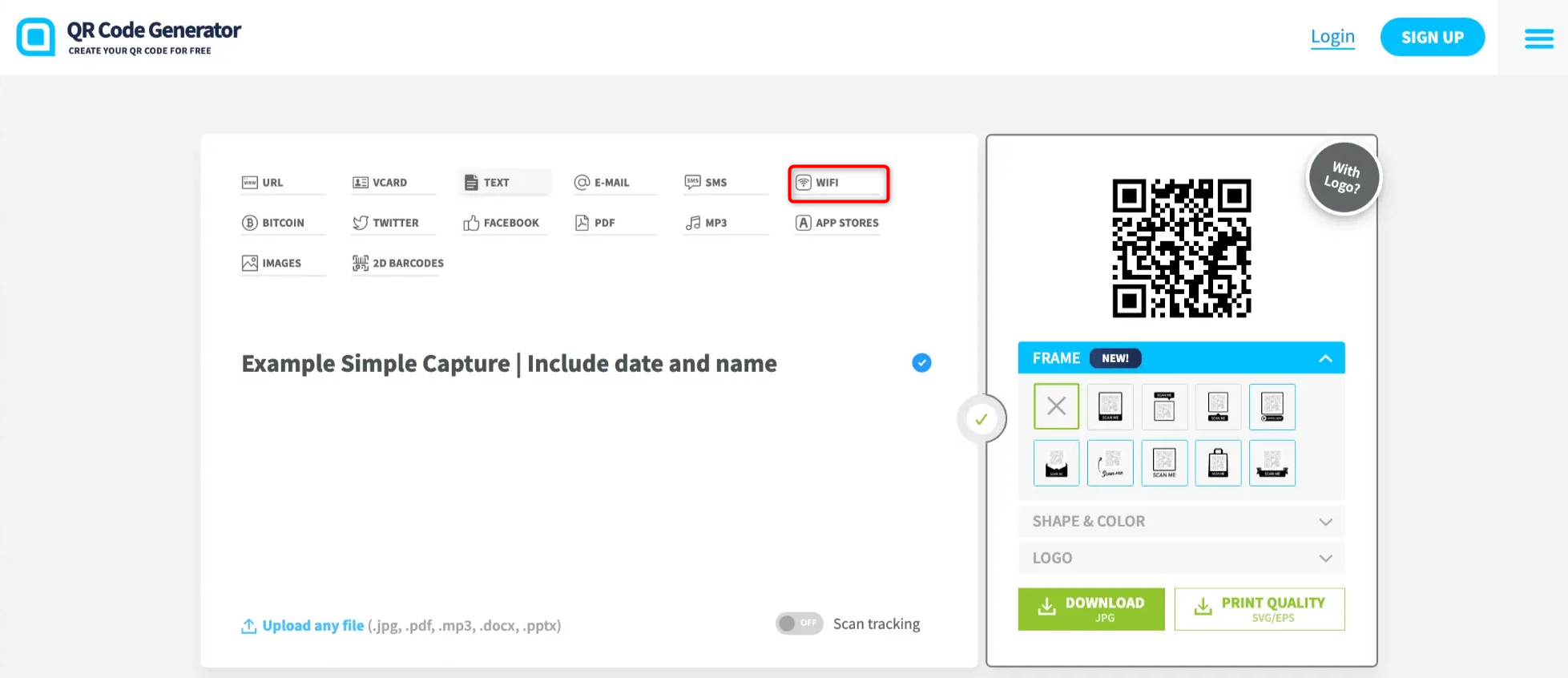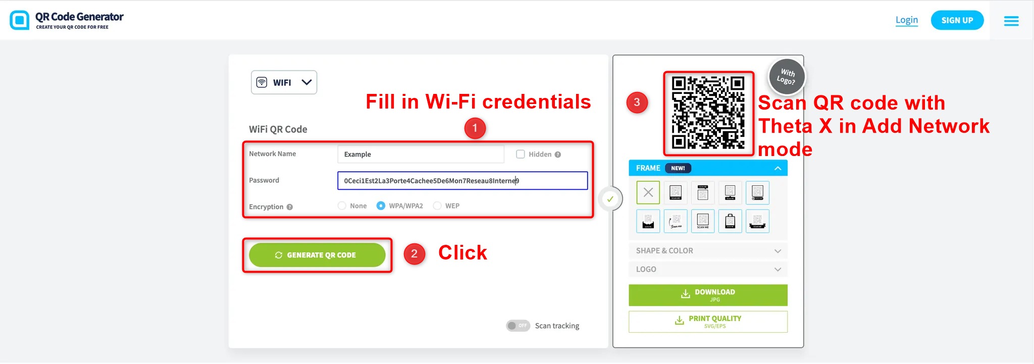 Connect to Wi-fi from a mobile device (if not done yet). If the phone is already connected to a Wi-fi use QR code on the device by following this instruction (for Apple and Android devices):