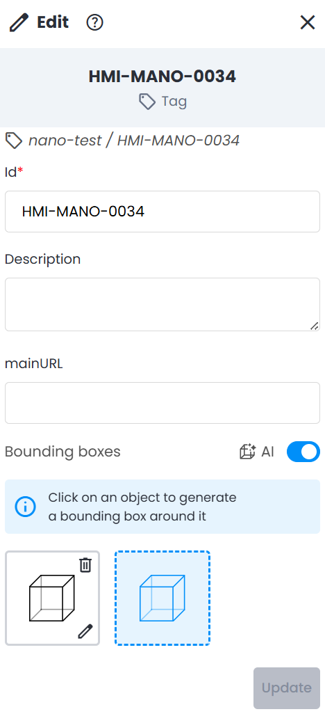3. In Edit tag panel ID, Description, Bounding Box, and Metadata fields can be modified at any time.
