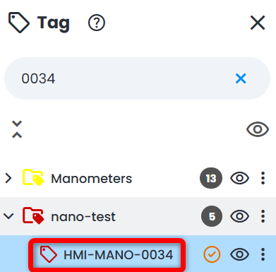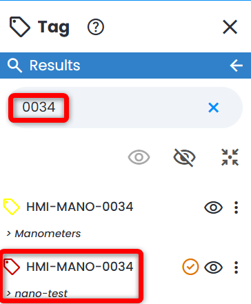 1. Type in Search tool at the top of Tag Explorer and click Enter to search for tags based on their ID or Metadata.