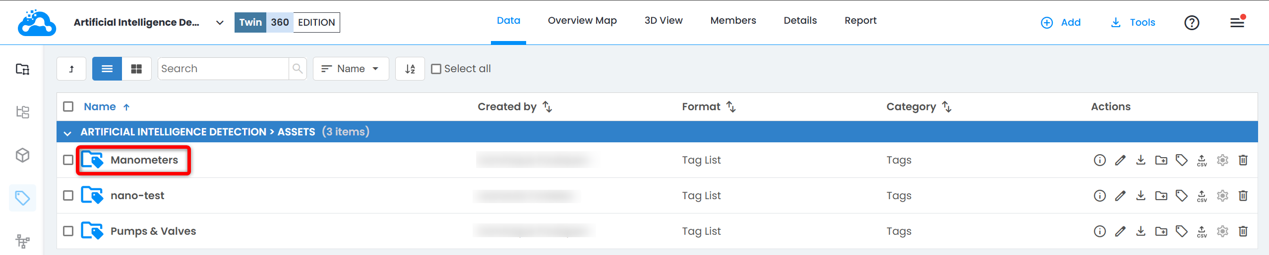 1. In 3D View, open Tag Explorer from the left toolbar and click on a tag list to select it.