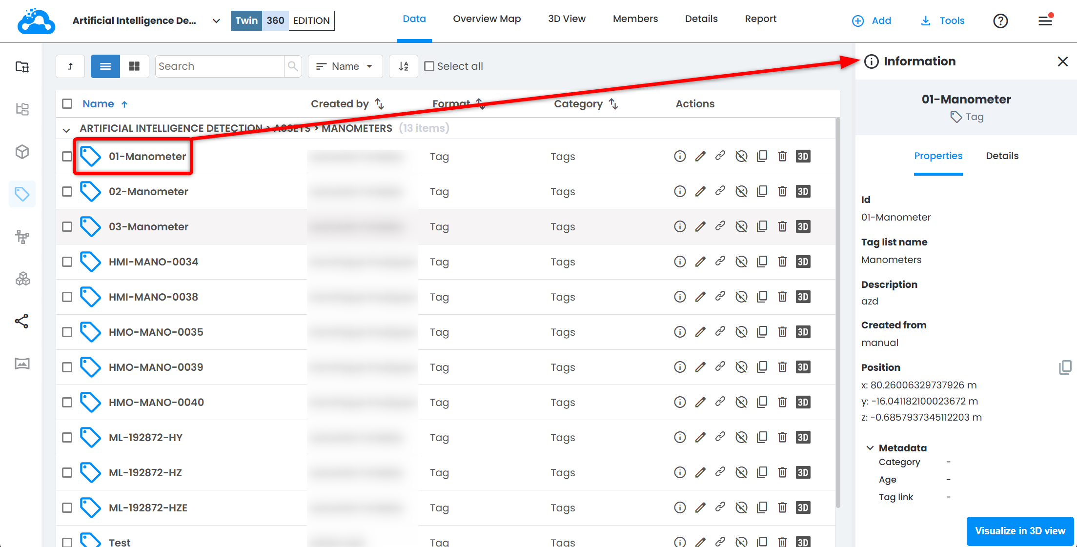 3. Click Visualize in 3D View to view the tag in 3D View.