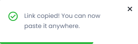4. Link notification will open at the bottom right corner of the screen. URL is now copied to clipboard.