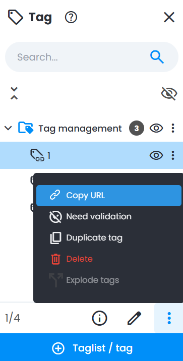 1. With a tag selected and highlighted in Tag Explorer, click Copy URL icon on the action toolbar at the bottom of Tag Explorer.