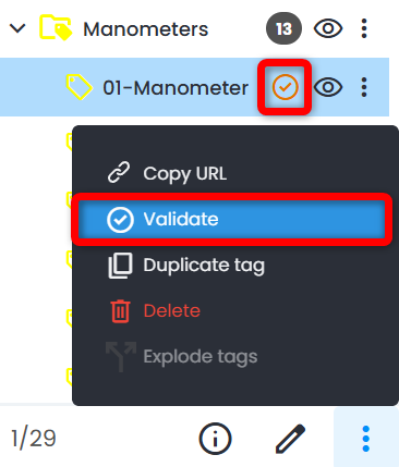 2. Now the action changes to Validate and a clearly visible checkmark appears next to the tag name.