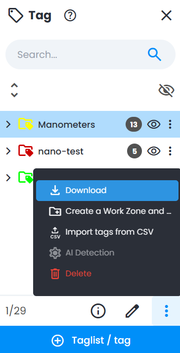 2. With a tag list selected and highlighted in Tag Explorer, click Download icon at the bottom.